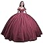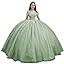 Youjiayi Glitter Tulle Quinceanera Dresses with Train Off Shoulder Beaded Sweet 16 Dresses Pleated Long Ball Gown for Women