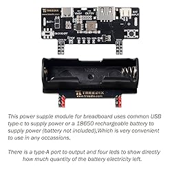 Treedix Breadboard Power Supply Module 3.3V 200mA 5V 2A Prototype Breadboard Equiped with USB Type-C Charging Port, Type-A Output Port and Rechargeable Battery's Stand, Charging Module for Arduino