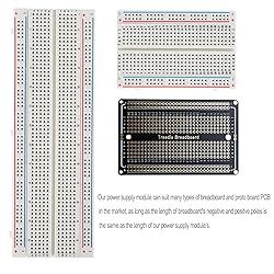 - Specification: Output Voltage: 3.3V/5V Size of the Breakout Board: 75 x 35 mm(2.95*1.37in) Maximum Output Current: 2.4A (we suggest to use it under 2A) Two Modes of Supplying Power: Insert the rechargeable battery or use usb type-c Intelligent Identification Load: After inserting the battery into the module, insert the module into the breadboard and press the switch knob. If the experiment is done on the breadboard, the module will start to supply power. When the experiment is stopped on the breadboard, long press the switch for 10 seconds to stop the power supply and enter the standby state. Standby power consumption less than 100μA. When no device is connected, the led light automatically turns off in 40 seconds Note 1.There are marks of negative/positive anodes in the module, and they can not be inserted inversely into the breadboard or the chips of the module will be burn. 2.This module has protection of overcurrent, overvoltage, and short-circuit for output or input; and module over temperature protection, instantaneous withstand voltage 12V. 3. It is not recommended that input and output work at the same time, because the voltage is less than 5V 4. Note: This product does not have a charging protocol and cannot power devices with a communication protocol 5. It is not recommended to charge the battery below 3000 mah, unless it is with a protection board, otherwise the current is too large to damage the battery. 6.Pay attention to the correct installation of the battery. The reverse installation may cause damage