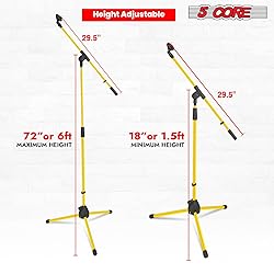 - The 5 Core mic stand has adjustable height. The minimum height is 31.5 inches, and the maximum height is 63 inches. The 27 inch boom arm rotates 180 degrees for easy and flexible micpositioning. The tripod leg design features sturdy metal legs with rubber caps, making it stable even on uneven surfaces. The heavy duty mike stand has a strong metal build quality and reinforced clutch, holding up to 3.5 lbs. This floor mic stand comes with 2 mic holders and 3/8" to 5/8" screw adapters, fitting most mics and accessories. Portable soporte de micrófono, collapsible design, and can be assembled in minutes. Perfect for anyone who needs a reliable, versatile mic stand.
