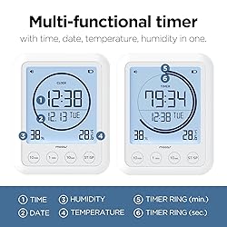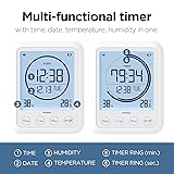 Multi-Timer Clock with Timer, Clock, and Temperature/Humidity Measurement Function Neat Design blending well with any Areas & High Practicality Large and Clear LCD Screen that Displays Time, Date, Day, Temperature (°C / °F) and Humidity Timer Ring that shows Time Flow Intuitively Fast and Simple Timer setting with 10min/1 min/10 sec button Highly Visible at Night or in Dark Areas with Backlight Display Practical with Various Ways of Placement (Standing/Wall mount/Magnet) Silent Mode enables Convenient use in Quiet Areas 3-Level Alarm Volume Control (Silent/Minimum/Maximum) IPX5 Guarantees Safe use in Kitchen and Bathroom