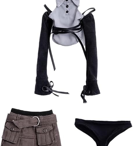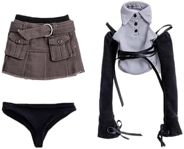 - 【 Fit】: 1/6 scale womans clothes set includes long sleeve T shirt, cargo skirt, and underwear.