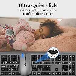 【2.4G Wireless Stable Transmission, Plug & Play】- Only one USB receiver is used for both the keyboard and mouse, providing easy installation by simply plugging the receiver into your computer port without the need for any drivers. The advanced 2.4G technology boosts the range up to 33ft, allowing for wireless typing with convenience 【Calculator Button, Hotkeys and Fn Lock】- The keyboard features 12 multimedia hotkeys and 6 commonly used office key combinations to enhance convenience and efficiency for both work and leisure activities. Meanwhile, the Fn lock provides an additional level of convenience. The calculator buttons allow you to quickly open the computer’s calculator program, saving you valuable time 【Ultra Thin & Ergonomic Design】- The thin wireless keyboard has 110 keys and accommodates most typing habits while taking up less space than traditional full-sized keyboards. Its ultra-slim and streamlined shape adds a classy and minimalist touch to your small desktop. The ergonomic full size keyboard has a tilt angle for more comfortable typing and improved work efficiency 【Silent Keyboard and Mouse】All keys on the office keyboard use scissor structure switches, making the keyboard ultra-thin, lightweight, responsive, noise free, and typing soft and comfortable. Silent cordless mouse keyboard fits office, home, library, dormitory, and so on. Never worry about disturbing others to rest while working or playing 【High Precision Mouse with 3 Adjustable DPI】- The professional Beken RF IC chip provides fantastic user experience with fast response, stable refresh rate, and smooth tracking. The mouse has adjustable DPI levels (1000/1600/2400 DPI) to meet various needs, such as work or learning online 【Mouse with No Light Design】- The wireless mouse features a lightless design without any strong and glaring red light at the bottom. You don’t have to worry about discomfort in your eyes caused by strong light, which is especially friendly for curious kids 【Long Battery Life & Auto Power Saving】- The keyboard requires 2pcs AA batteries, and the mouse requires 1pc AA battery (batteries are not included). This computer mouse and keyboard set features an ultra power-saving design, greatly extending the battery life. The wireless mouse keyboard combo has a smart sleep mode that saves power. The devices will enter deep sleep mode after 10 minutes of inactivity, and you can wake them up by pressing any button or key 【Wide Compatibility & One-Year Warranty】- This mouse keyboard is compatible with your PC, desktop computer, laptop, or notebook, and is designed to work with Windows 7/8/10/11/XP/Vista systems. Keyboard and mouse is also available for macOS/iOS/Android/Chrome OS/Linux, but the Fn multimedia keys may not function properly. When you purchase a SHUNJINRUN wireless keyboard and mouse, you are entitled to our one-year RISK-FREE product warranty