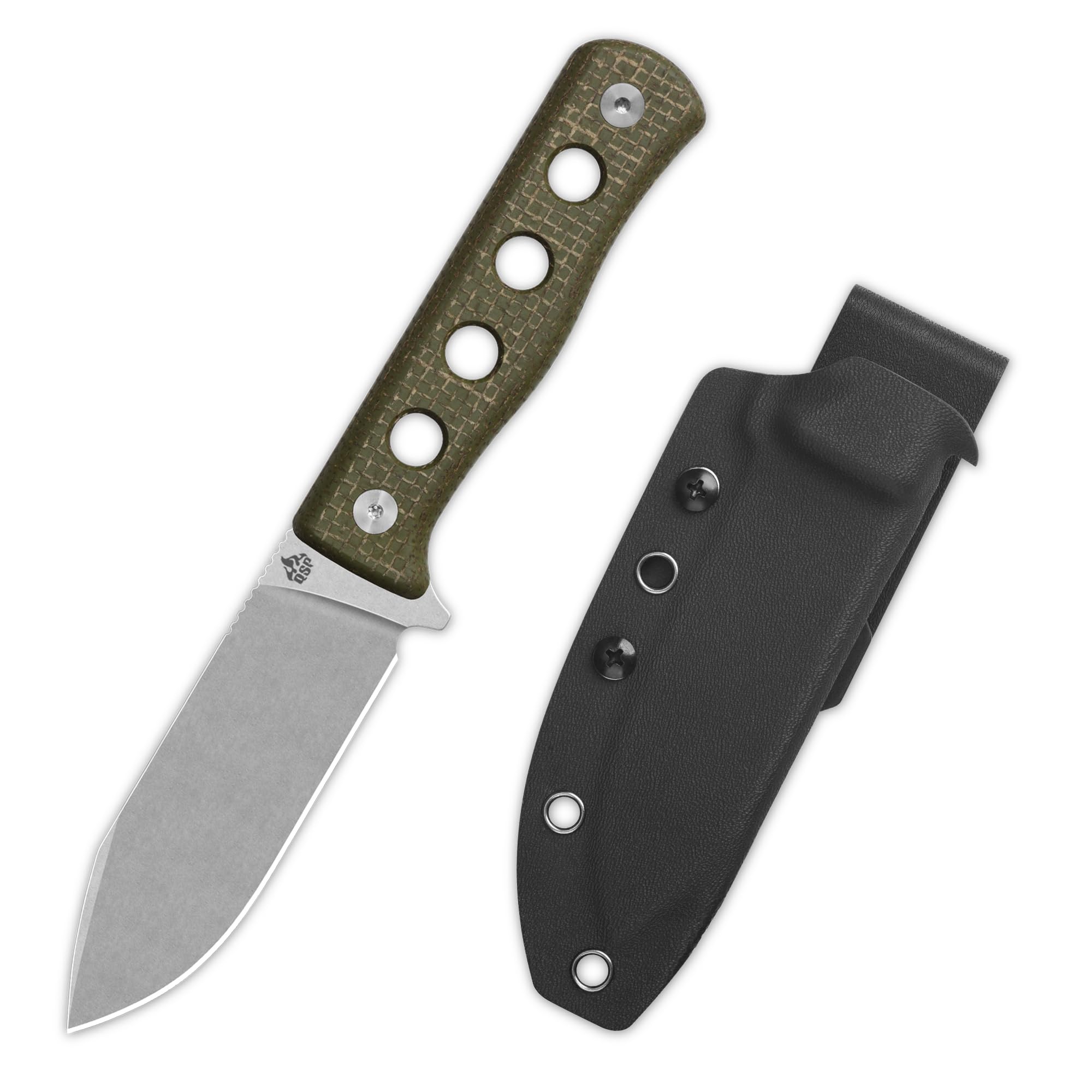QSP Canary Fixed Blade Knife, 4.25" DC53 Stonewash Blade Hunting Knives with Kydex Sheath, Black Micarta Handle EDC Knife for Camping, Outdoor, Hiking, Survival