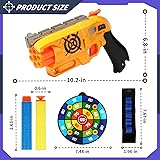 [Christmas birthday gift for kids] Package includes 2 toy guns and 80 replacement foam darts and 2 elastic wrists and 2 target hooks. This is a great toy soft bullet gun that can be used at home, yard, garage, party and park at any time. Birthday and Christmas gifts for boys and girls 6 years and older. [Impact gun with automatic rotating drum] Made of environmentally friendly ABS plastic, smooth surface is durable. Simply load the foam dart into the rotating drum (can hold 6 darts), pull back, and pull the trigger to fire 1 dart at a time (can fire 6 darts) [More fire support] Comes with 80 filled foam darts, and 2 elastic wrists (each can hold 8 filled foam darts) for continuous shooting fun. [Soft gun for children and adults] Soft head bullets are made of soft EVA, flexible, easy to deform and safe for young children. This toy gun can shoot darts up to 10 meters away. It can promote parent-child communication and friendship between children and friends and family. It is suitable for exercising children's hand-eye coordination, attention and shooting skills If you have any questions about your order or need help, please feel free to contact us.
