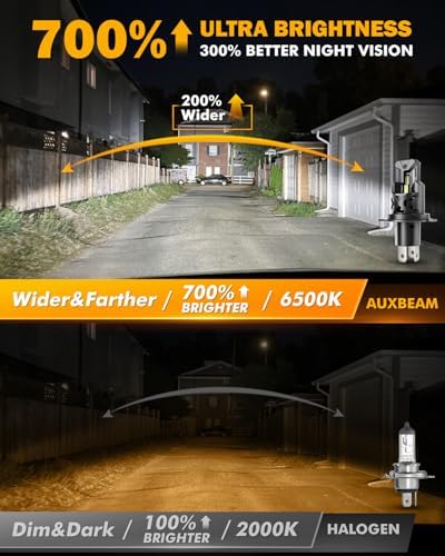 Auxbeam H4 9003 Fog Light, Upgraded 700% Super Brightness & 6500K Cool White H4 Light for UTV/ATV Offroad Vehicle