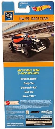 5 pack of diecast cars from HW 55th Race Team. Includes Turbine Sublime, Dodg Van, Erikstein Rod, Mod Rod and HW-4-TRAC. Great for STEM learning.