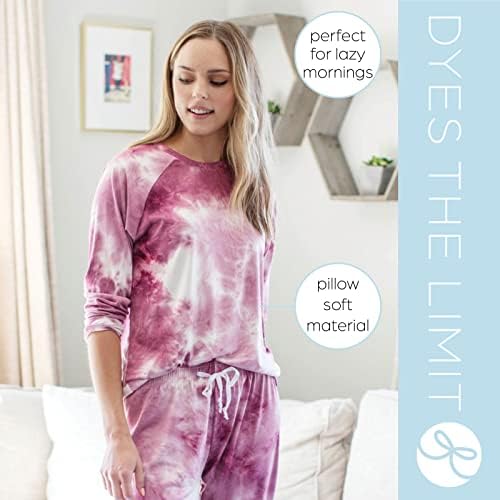 Hello Mello Dyes The Limit Lounge Wide Leg Pajama Pants & Long Sleeve Raglan Shirt - Orchid, Large/X-Large