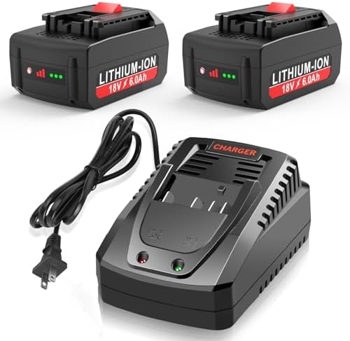 2-Pack 6.0Ah 18V Lithium Battery BAT609 and Battery Charger Kit Compatible with Bosch