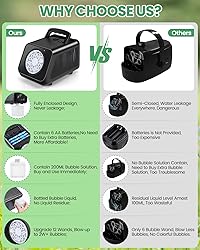 【WHY CHOOSE OUR BUBBLE MACHINE?】Kizmore bubble machine solved the pain points of traditional bubble machines, with the fully enclosed structure design, bubble liquid never leakage like classic semi-closed bubble machine, and water will not get to the ground, so that your kids will not slip when chasing bubbles. A better safe experience for you, your kids, and your pets! 【CONTAIN BATTERIES AND BUBBLE SOLUTION】Our automatic bubble machine contain 6 AA batteries and 200ML bubble solution, you don’t need to buy extra batteries, which is more affordable compared with the traditional bubble machine, you can immediately enjoy the bubble world upon you open the box. Get ready for unlimited bubble fun with this bubble maker! 【PORTABLE FOR INDOOR OUTDOOR USE】Our bubble machine is lightweight and portable, making it easy to take with you wherever you go, perfect for indoor and outdoor use at birthday parties, wedding, outdoor picnic, stage, graduation ceremonies, concert. It creates a fun and romantic atmosphere wherever you use it, perfect indoor outdoor toys for your kids toddlers. 【SAFE AND CHILD-FRIENDLY MATERIAL】Our professional bubble machine is made of high-quality and durable ABS material, with smooth edges and no burrs or odor, it has passed CPC toys authentication, making it a safe choice for your kids, toddlers, pets. This electric bubble machine has a one-year guarantee, we also provide professional pre-sales and after-sales services for you, please feel free to contact us. 【IDEAL GIFT FOR KIDS & PETS】This bubbles for kids is the perfect kids toys for an outdoor party, and this is definitely the best birthday gift for toddlers. Colorful bubbles will bring endless fun and dreamy atmosphere for your kids, pets. Watch as they giggle with delight and chase the bubbles around the yard, creating memories that will last a lifetime.