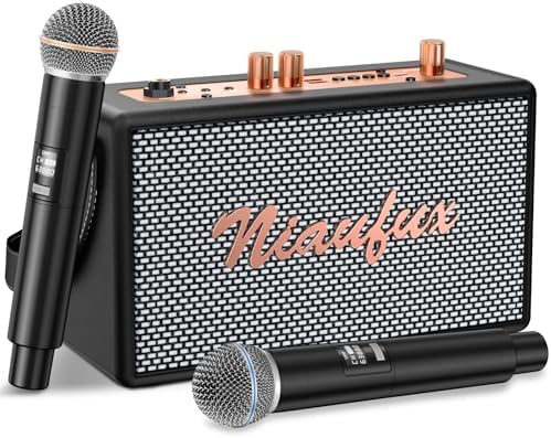 Máquina de Karaoke Retro con Dos Micrófonos Inalámbricos, Altavoz Bluetooth Portátil para Adultos y Niños, Sistema de PA Recargable para Fiestas en Casa, Soporte AUX/USB/TF/OTG, Regalos de Decoración Vintage