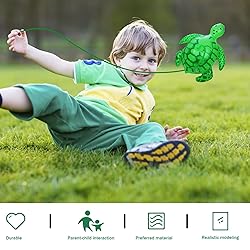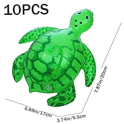 - Description: Our inflatable turtle toy is a cute and realistic toy made from durable PVC material. It features an elastic rope and air valve design for convenience and added playability. The light-up sources and sound effects add to the fun and entertainment of playing with it. Each package includes 10 inflatable turtle toys, making it a great value for families, preschools, or parties. Choose our inflatable turtle toy for endless fun and entertainment. Features:. Inflatble Turtle. -Color: Green + Black. -Material: PVC. -Size: about 17x20x9.5cm/6.69x7.87x3.74inch. Tips: The frog balloon is delivered in uninflated condition. Note: Manual measurement, please allow slight errors on size. The colors may exist slight difference due to different screens. Package Including 10 Pieces Turtle Balloons with Elastic Strings.