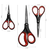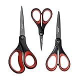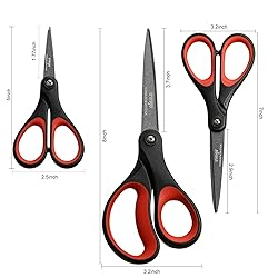 [Titanium Coated Stainless Steel Blades] Made of premium stainless steel with titanium coating, ensuring the scissors durability and sharpness. [Non Stick Teflon Coated Blades] The 3 piece of scissors are very sharp and don’t stick easily. Suitable for multipurpose heavy duty use in office, school or at home. [3 Pack Scissors All Purpose] Scissors include size 5 inch, 7 inch, 8 inch. One set of scissors is perfect for cutting various materials such as paper, fabric, plastic, tape, leather, thread, sewing and craft projects. [Comfortable Grip] The ergonomic design provides a comfortable grip, reducing hand fatigue and making it easy to use. Be carefully when cleaning or holding scissors to avoid cutting yourself. Please store the scissors in a dry place when not in use.