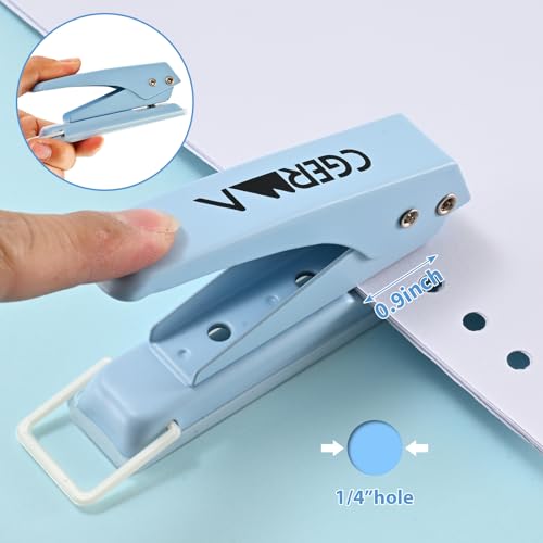 Single Hole Puncher, 1/4" Hole, 50% Labor Savings, Heavy Duty Metal Punch, 15 Sheet Capacity, for ID Cards, Chipboard, Art Project, Crafts Easy Punching, Blue