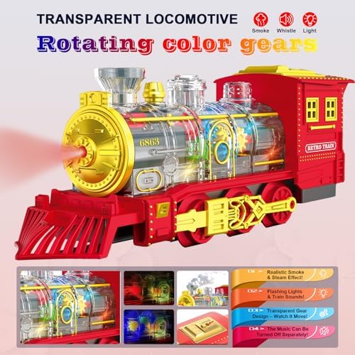 Electric Train Set Christmas Train Toys for Boys with Smokes, Lights and Sound (ON/Off) Rechargeable Train Set Under Christmas Tree, Toddler Model Trains for 3 4 5 6 7 8+ Years Old Kids Gifts