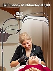 【Half-Moon Floor Lamp】The lash light is designed with a flexible neck to allow you to 360° rotate and bend it easily into various angles, It provides a wider and even lighting range. No matter what project or fingernails you're dealing with, you don't have to deal with shading. 【Sturdy Metal Base with Wheels】The sturdy and heavy metal base is designed to avoid tipping, and the 360°rotate wheels design allows you to easily move the floor lamp to the desired position. Press the lock button, you can secure the lash tech light firmly. 【Height Adjustable】The standing lash lamp heights adjustable can be adjusted from 46in to 75in(118-190cm). It can meet your different work content, making it ideal for fine professional work. 【Brightness Adjustable】The lash light can adjust the brightness level from 10% to 100%, 3000K (warm light) to 6000K (cool light), perfect for working on intricate details without straining your eyes. 【Flexible Phone Holder】The lash extension light is equipped with phone holders (compatible with most smartphones), it can be adjusted 360°at will, Perfect for video shooting & Live streaming. 【Versatile Floor Light】The LRD lamp is ideal for lighting work of estheticians, tattoo artists, lash technicians, manicurists and other professional beauty workers. Perfect for makeup tutorials, video shooting and Live streaming.