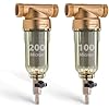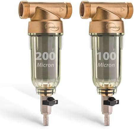 iSpring WSP2PK21 Reusable Whole House Spin Down Sediment Water Filters, Twin Pack with 200 Microns and 100 Microns Filter Sizes, Clear Housing, Lead-Free Brass
