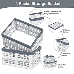 - Collapsible Crate Stacking Folding Storage Baskets for Home Kitchen Bedroom Bathroom Office