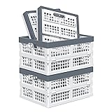 Crafted from high-quality plastic, these collapsible crates are lightweight yet durable, ensuring they can withstand heavy loads without warping or breaking With an opened size of 13.5''L X 10.3''W X 7.2''H, these white crates are built with a 15L capacity When not in use, simply fold the foldable crate down for easy storage in tight spaces like closets, car trunks, or under beds Idea for any collapsible storage, useful for car trunk, a file crate, grocery store organizer or help save space in a small college dorm room Includes 4 pack collapsible storage crates