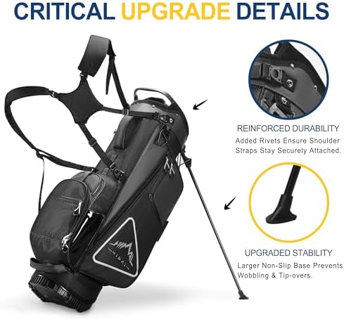 - THOUGHTFUL DESIGN UPGRADE - High density material and PU leather features splash-proof, rip-stop and durable. It has beautiful looks, long lifespan and good performance. This golf bag for men and women has some delightful features, including an umbrella holder, tee holder, dust cover hood, towel ring with Velcro glove attachment