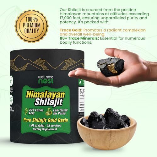 - PROMOTE OVERALL WELL-BEING: Wellness Nest provides fulvic acid +75% and at least 86 trace minerals, antioxidants, amino acids, and bio-active elements: boosting your body's performance, leaving you refreshed and energized! Enhance your overall well-being and immune system with our Pure Shilajit Gold Resin. Experience improved focus and mental clarity with our himalayan shilajit resin.