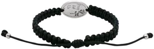 Saint Padre Pio Medal Bracelet | Sturdy Black Woven Cord | Catholic Jewelry | Great Catholic Gift for First Holy Communion or Confirmation | Adjustable
