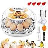 Incubators for Hatching Eggs, Chicken Waterer Cups, Automatic Egg Turner Holds 12 Eggs, Smart Incubator 360° Clear Window with Temperature Display Egg Candler for Small Poultry Chickens Ducks Quails