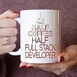 MONIZILUCKY Full Stack Developer Mug - Half Coffee Half Full Stack Developer Gift 11oz White Ceramic Mug for Retirement, Daddy, Dad, Papa, Christmas, Thanksgiving, Coffee's Day, Father's Day