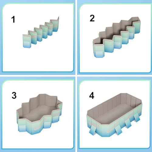 Product Size:Gradient Blue, 260cm: Outer Diameter Size: Length:260cm * Width:165cm * Height:55cm/ 102inch* 64.9inch*21.6inch Inner Diameter Size: Length:223cm * Width:135cm * Height:55cm/ 87.7inch* 53inch*21.6inch Features:Durable and Sturdy Materials The rectangle collapsible pool is made of 4 layers of materials, including ultra tough and thickened PVC material, sandwich mesh, and high-strength composite reinforcement plate. It is sturdy and durable, not afraid of punctures or abrasions, and has a long service life. There are drainage holes at the bottom and side for quick drainage.Non Inflatable Swimming Pool The foldable pool does not require inflation, and don't worry about air leakage, collapse, puncture, and other issues. Easy to operate, convenient to carry and store, convenient for travel and space saving storage at home.Dual Fixed Structure The swimming pool is surrounded by a dual fixed structure, which combines triangular support plates and composite reinforcement plates to provide strong support and fixation for the pool. Easy to operate, simply open the swimming pool and secure the bracket to let water in and enjoy the joy of summer.Packing List: 1 X Foldable Swimming PoolAttention 1. Chromatic aberration existed due to different display setting. 2. There may be 1-3cm differences as manual measurement.