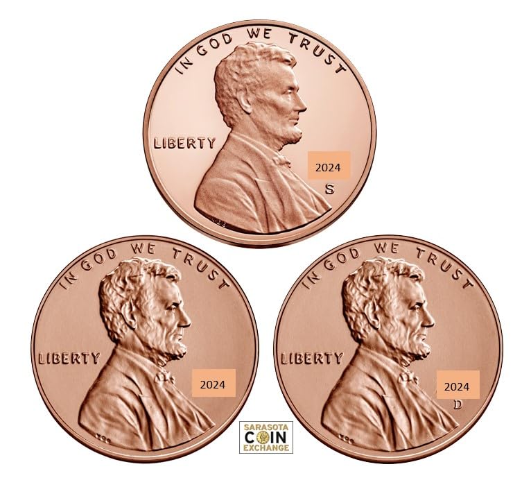 - 2024 S,P,D Lincoln Cent Proof Coins 1C S Proof and P,D Uncirculated 3 Coin Set