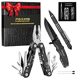 3 Items Gift Set: POXIMO PFT gift set includes 3 different items: 14-In1 Multi-tool Pliers + Folding Knife + Tactical Pen. All items were crafted from premium stainless steel and aluminium. Compact, durable and sturdy Stocking Stuffers for Men: Every men who takes care of the family deserves a set of handy tools which helps you out here and there, POXIMO PFT 3 tools pack will get you ready for those times, delivers limitless possibilities to your everyday life "BEST MAN EVER" Supper Gift Pack: A decent and lovely gift set for man, with 3 items multi-pliers/folding knife/tactical pen, comes in premium nice looking gift box with everything settled, box printed with "BEST MAN EVER" so no extra gifting box needed Multiple Applications: Featured with 20+ functions, POXIMO PFT tool set plays it’s duty in many situations like Camping, Hunting, Fishing, Hiking, DIY Working, Repairing, Writing, Surviving, Covers every elements of your daily life and outdoor adventures Ideal Gift Choice: POXIMO super tools gift set is bigger, heavier, better and more decent. The happiest thing to receive such a supper gift set full of useful tools. A perfect birthday gift, father’s day gift, thanks giving day and Christmas gift Valuable Gift Set: 3 full size separate items in one pack, Cost-effective one package for 3 items with triple value
