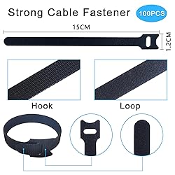 100 PCS 6 INCH / 150MM CABLE STRAPS This value pack contains 100 pieces of black reusable cable ties, measuring 6 inches. This is the ideal size for managing standard cables, from charging cords and computer wires to audio cables. A perfect wire organizer solution to keep your daily setup neat and accessible. EFFECTIVE CABLE MANAGEMENT Transform messy spaces instantly. These cable ties are essential cable management tools for organizing your office desk, entertainment center, or server racks. The secure hook and loop fastening keeps wires tightly bundled, improving airflow and aesthetics around your electronics. DURABLE & REUSABLE DESIGN Made from high-quality fabric material, these wire ties are built to last. Unlike single-use plastic zip ties, our fastening cable ties can be opened and closed thousands of times without losing grip strength. They are eco-friendly, flexible cord ties that won't damage your cables. MULTI-PURPOSE: HOME, OFFICE & GARDEN Versatile cable organizers suited for indoor and outdoor use. Use them as cord wraps for kitchen appliances, securing extension cords in the garage, or even in the garden to support plants and vines. The durable material withstands daily wear, making them practical for any task. ADJUSTABLE & SECURE GRIP Features a self-gripping design that is easy to use. Simply wrap the cable straps for cords around the bundle and press to lock. The wire management straps are fully adjustable to fit different bundle sizes. You can also connect multiple ties together to create a longer strap for bigger items.