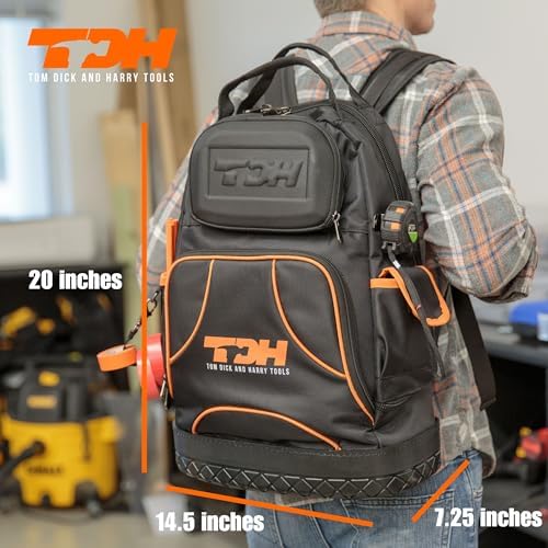 - Ergonomic and comfortable backpack: The padded shoulder straps and waist support help reduce the strain from carrying heavy tools, making it more comfortable to wear. This backpack is great for outdoor use and work. The strong handles and waist support also make it easier to carry around big job sites.