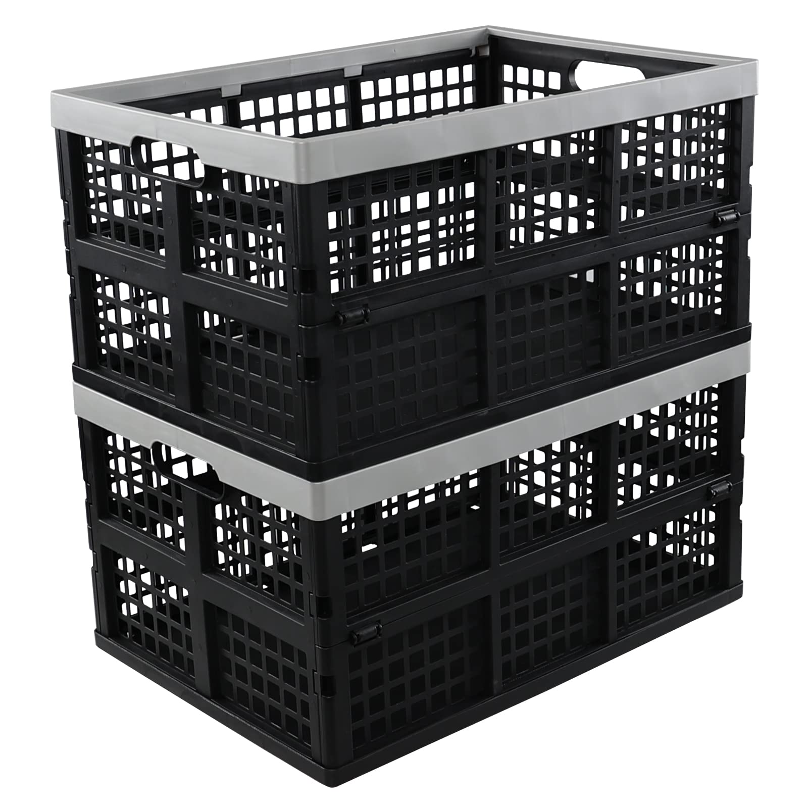 42 L Stacking Collapsible Storage Crates, Large Plastic Folding Crates, 2 Packs