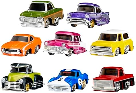 - PACK INCLUDES: CarTuned Series 2 -1964 Chevy Impala (Custom) CarTuned Series 2- 1957 Chevy Bel Air - Kandy Purple CarTuned Series 2-1969 Chevy Camaro (Stock) CarTuned Series 2 - 1956 Chevy Nomad - Kandy Pink CarTuned Series 2 -1969 Chevy K5 Blazer (Custom) CarTuned Series 2- 1953 Chevy "Troka" - Kandy Green (2-TONE) CarTuned Series 2 - 1963 Chevy Corvette (Race) CarTuned Series 2 - 1987 Chevy C10 (Custom)