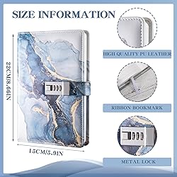 Password Lock Diary - LXWHYP By installing a metal combination lock on the lock journal notebook, this diary will protect your own secret space, whether it is personal privacy in your life or important information at work, it is fully protected. Additionally, the lock ensures that only you can access the journal, giving you complete control over its contents and letting you know your secrets are safe. Size to Fit Most Needs - The paper thickness of this journal with lock is perfect for writing without worrying about bleeding. It is A5 size, 8.6×5.9 inches, with a combination of cover and inner pages, which can meet most writing needs, help you record information more conveniently, and give you a better writing experience. Vintage Lock - Vintage metal lock is easy to use, the password consists of three numbers from 0 to 9, and with a thousand password combinations for you to choose from, you can ensure that the information you record is secure enough. The initial password is 0-0-0. After the password is correct, move the button to the right to change the original password. Better protect your privacy. Multi-Purpose Journal - This diary for girls can not only be used as a tool for writing daily notes, but also as a planner, diary, notebook or sketchbook. It comes with ribbon bookmarks and different pages for those who want to live and work in an organized way. Idea Gift - Journal diary notebook is the ideal gift for friends, family, and lovers. Whether it's for a birthday, Christmas, graduation, or any other occasion, this diary can be your choice of gift for others.