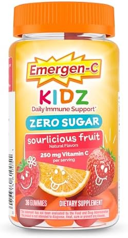- 36 Count Zero Sugar Emergen-C 250 mg Vitamin C per serving Kidz Gummies for Daily Immune Support (1) sourlicious fruit flavor