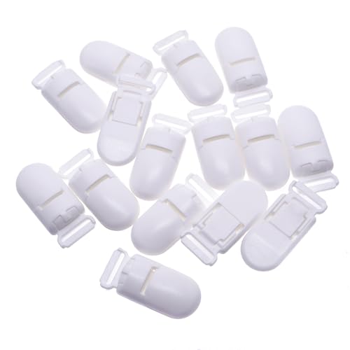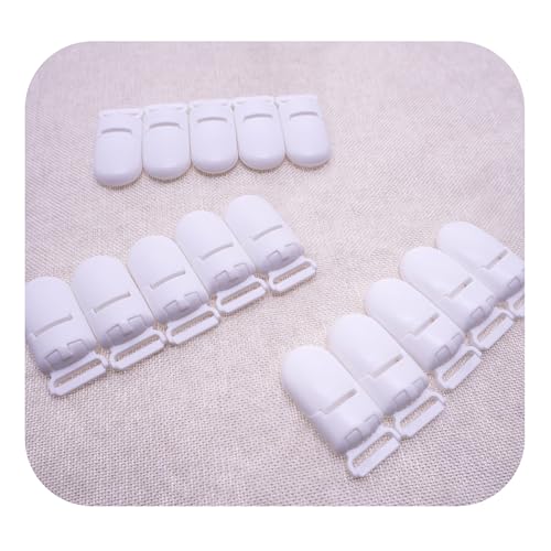 Introducing our versatile and practical plastic pacifier clips! The item is a pack of 15pcs T-shape baby pacifier clip in white colors, which are mainly made of durable hard plastic material, and can be used in a variety of craft projects including making badges and dummy straps. These clip has a plastic insert to protect the fabric you attached to. Features -Our pacifier clip baby holder is made of durable hard plastic . -The size for clip is 40mm/1.57 inch long,18mm/ 0.71 inch wide .The loop for holding the ribbon is 0.59 inch across ,can hold up 15mm(0.59in) ribbon . - You will receive 15pcs white plastic baby pacifier clip hodler , enough for your daily use -These washable clips are perfect for DIY making of pacifier clip ,dummy clip, bibs, mittens, binky and blankets for your baby. -With a variety of uses, these clips can also be used as suspenders or even as clips for mittens. -The pacifier holder clip is an essential accessory for any parent, and with our plastic pacifier clips, you can easily create your own paci clip for your little girl and boy . -Whether you're making a gift for a newborn or just need a clip for your baby's pacifier, our plastic clips are the perfect solution. Don't settle for anything less than the best – choose our plastic pacifier clips for all your baby clip needs! -These suspender clips are compatible to fit with pacifier, soother, drool bibs, clothes, blankets, strollers, student ID card holder, car seats and so on.
