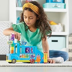 LEARN TO COUNT FROM 1 TO 7: This interactive bus helps kids recognize numbers and colors as they unfold the rainbow and explore the number sequence. SOUNDS AND SONGS FROM THE SERIES: Includes 12 melodies and sound effects inspired by Numberblocks to make learning fun and engaging. COMPATIBLE WITH BLOCKS 1 TO 6: Expand the game by connecting other characters (sold separately) to encourage creativity and coordination. DEVELOP STEM SKILLS: Encourages early math understanding, fine motor skills and imagination in children ages 3 to 7. SET CONTENTS: 1 interactive rainbow bus, 1 Seven figure, sticker sheet to customize, requires 2 AAA batteries included. DE LEARNING RESOURCES: We design quality educational toys that inspire hands-on learning and curiosity at home and in the classroom.