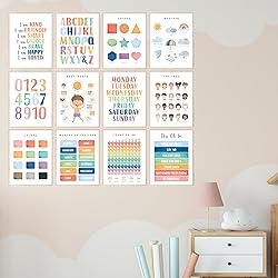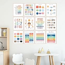 Educational Montessori Posters: Enhance your child's learning environment with this set of 12 (8x10”) unframed posters, perfect for inspiring young minds. From vibrant colors to the ABCs, each poster is a stepping stone in early education. Plus, the alphabet poster for toddlers is designed to pique their curiosity about letters and early literacy. Interactive Toddler Learning Posters: Engage toddlers with fun and colorful posters that make learning exciting! These charts cover essential topics, including numbers, days of the week, and emotions, supporting early childhood development. The counting feature of these classroom posters for preschoolers makes mastering numbers as easy as 1, 2, 3 for little learners. Vibrant Preschool Posters for Toddlers: Brighten up any preschool or homeschool room with these eye-catching posters. Designed to stimulate visual learning, they’re ideal for introducing basic concepts in a playful manner. The learning posters for toddlers are tailored to captivate and hold the attention of energetic youngsters. Comprehensive Learning Wall Posters for Toddlers 1-3: This all-in-one set addresses key learning areas, helping toddlers grasp fundamental concepts such as shapes, feelings, and counting in a friendly, accessible format. The educational posters for kindergarten are also a valuable tool for transitioning kids to a more structured school setting. Diverse Educational Wall Decor for Toddlers: Celebrate diversity and promote inclusivity with posters that depict a wide range of emotions and characters. These educational tools are not just informative but also enriching for young learners' social skills. With these toddler posters educational, you'll bring a world of knowledge and understanding right to your walls.