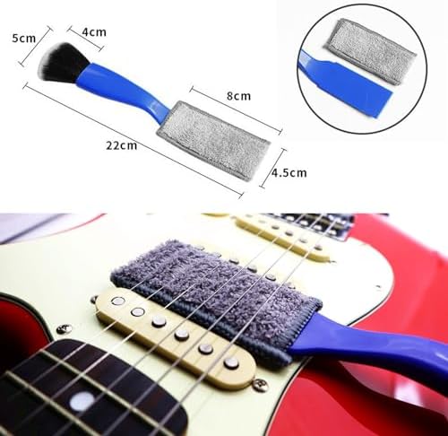 - Dual-headed design brush serves two essential functions, the combination of cloth and brush on both ends effectively removes rust from strings, and allows your guitar to be cleaned more fully.