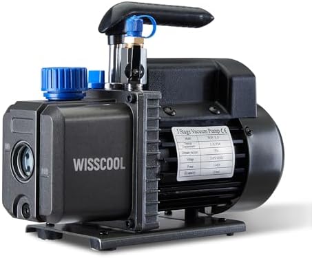 • Powerful Vacuum Pump: Wisscool vacuum pump delivers a flow of 3.5 CFM. Powered by 1/4HP(180w) 110V motor to ensure efficient and reliable performance. It maintains air conditioning systems by effectively removing moisture before refilling the refrigerant, perfect for those who want to self-diagnose or recharge their AC systems