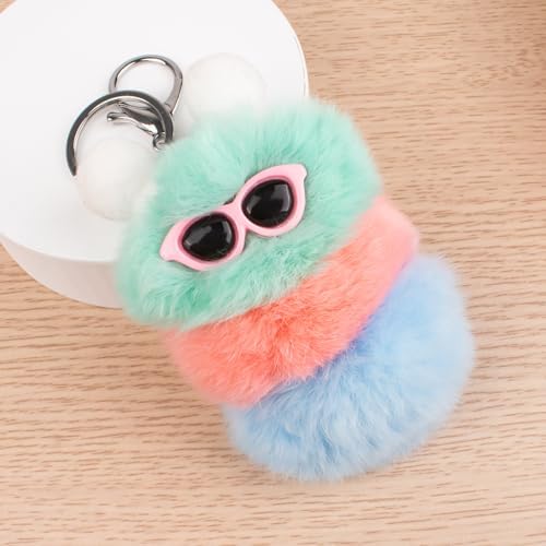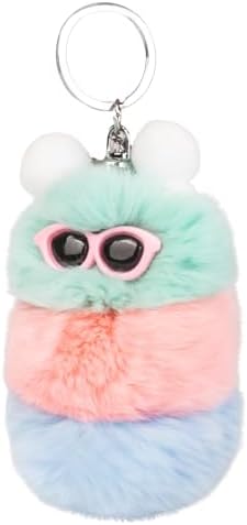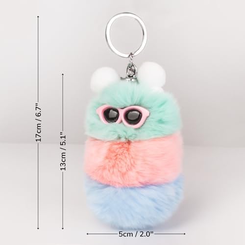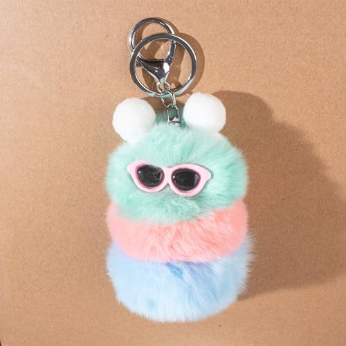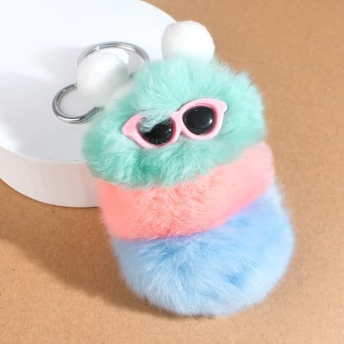 Caterpillar Worm Keychains, Pom Pom Cute Funny Plush Ring Accessories for Backpack Wristlet Car Keys Balls Decor Handbag, Charger Girly Frost Mint Llaveros Para Mochilas Charm for Girl Teen Women (B)