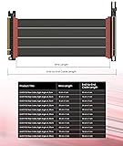 Verified Compatibility — Built for vertical GPU mount and standard layouts across towers, SFF/ITX sandwich cases, open benches, and water-cooled rigs. Fully backward-compatible with PCIe 4.0 and validated on ASUS WS WRX80SE WiFi II and WRX90E Gen5 boards. Ready for next-gen cards like RTX 5090 and RX 9070. Use this PCIe 5.0 riser cable to place the GPU exactly where airflow and aesthetics demand—without giving up stability. Gen5 x16 Performance & Shielding — Delivers full 128GB/s on PCIe 5.0 x16 with tuned impedance, premium conductors, and multilayer shielding to suppress crosstalk and EMI. The AVA design targets clean eye margins under load and tight bends, making it a dependable PCIe Gen5 riser cable for high-FPS gaming, AI, and storage workflows. Replace Gen 3 and Gen 4 PCIe cables while preserving upgrade headroom for future GPUs. Showcase Aesthetics, Improve Cooling — Move the card where it breathes. A vertical mount GPU clears intake for thick shrouds & radiators, reducing heat soak & noise while giving builds a clean, gallery-style look. Route like a tidy GPU extension cable & keep clocks steady thanks to robust shielding & low-loss geometry. Builders report good quality & that it simply works great when paired with the right bracket and case layout. View Product Description to ensure Compatibility with your PC case. Installation Instructions — Measure with a string from the motherboard slot to the GPU PCB to pick the correct span. Seat connectors fully until latched; Fold & Flex in any way. Use standoffs and support brackets if the chassis requires it. If fit seems tight, contact us before forcing parts—we’ll advise the best path for your case model. Clear guidance turns this into a straightforward PCIe cable install, even in cramped ITX routes. Choose the right Cable — Choose a length between 2–35.4 inches (see Installation Instruction) and the connector you need: right angle, straight, left angle, double reverse, single reverse right, single reverse left, or single reverse straight. One family covers ITX sandwiches, server trays, and vertical displays. Consistent Gen5 signal integrity across sizes makes it a flexible PCIe extender or GPU riser cable for clean cable management today with room to evolve tomorrow.