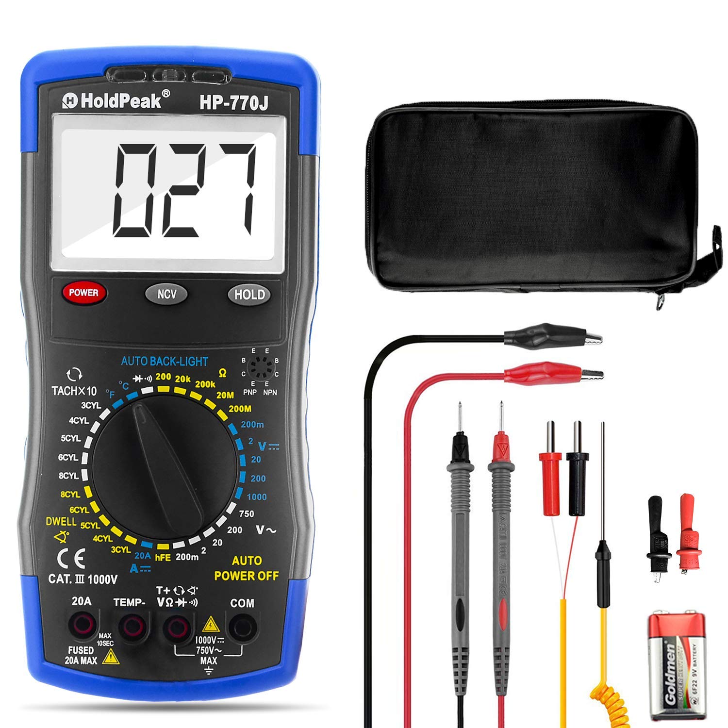 - Accurately Test Full Features: Accurately measures AC/DC voltage, DC current, resistance, continuity test, diode and batteries Multimeter Tester 2000 Counts Digital Multimeter with DC AC Voltmeter and Ohm Volt Amp Meter Measures Voltage, Current, Resistance; Tests Live Wire, Continuity This Digital Multimeter is designed to troubleshoot a variety of automotive and household electrical problems safely and accurately. It’s a suitable tool if you want to do some household or commercial improvements whether DIYers or Hobbyists. multimeter voltage tester battery tester multimeter tester digital multimeter voltmeter multi meter electrical tester voltage meter electric tester