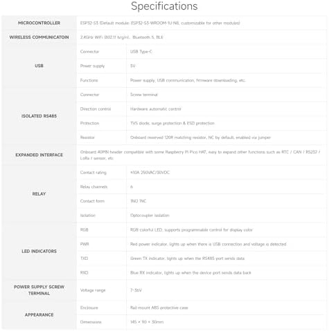 Waveshare Industrial 6-Channel ESP32-S3 WiFi Relay Module, Supports WiFi/Bluetooth/RS485 Control, Onboard RS485 / Pico HAT Interfaces, with Multiple Isolation Protection Circuits