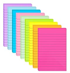 Portable Large Size: Lined sticky notes 4x6 inch, 9 pads/pack ( 9 bright assorted colors aesthetic sticky notes ), 35 Sheets/pad. Large size lined sticky notes has plenty of room for writing neatly to do lists or notes Super Sticking Notes: HQCME sticky notes with lines have strong adhesive, make sure sticky notes don't fall off, and removes cleanly as well. Won't damage surfaces or leave an adhesive residue, lined sticky notes 4x6 can reapplication as many times as needed Bright Large Sticky Notes: Sticky notes 4x6 contains 9 colors, Red, pink, orange, yellow, light green, green, light blue, blue. The colorful and big sticky notes keep important information from going unnoticed, and elevate the aesthetics Thick Paper: Lined sticky notes made with 80 GSM thicker paper, flat sticky notes are strong, stay on any surface without curling. Smooth writing, No ink-seepage. accommodates pens, pencils, markers, and other writing tools Widely Uses: Lines sticky note pads are great for helping you stay organized, sticky notes lined are suitable for school, office, family. Adheres for leaving notes, to do list or reminders on walls, monitors, desktops, blackboards and other surfaces