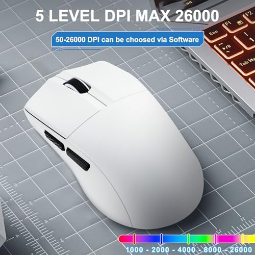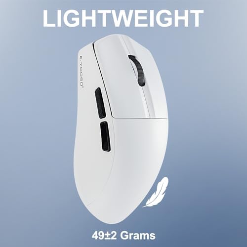 HUO JI E-YOOSO Wireless Gaming Mouse, 49g Superlight, Bluetooth 5.1/2.4G/Wired, 26,000 DPI, 5 Programmable Buttons, 150 Hr Rechargeable Battery, Software Support for PC, Mac, White