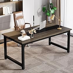 Plenty of Workspace: The desk's extra large size(63"L x 31.5"W) provides ample space for working on a computer, doing paperwork, or conducting meetings. The extra-wide design allows for more space to spread out, which can be especially helpful for those who need multiple monitors or reference materials close at hand Spacious Leg Room: This large office desk features an open area underneath the desk, providing plenty of legroom for comfortable use. This is especially important for taller individuals or for those who prefer to sit with their legs stretched out while working Multipurpose Use: The desk's versatile design makes it suitable for a variety of uses. As a computer desk, it can accommodate desktop computers or laptops, and as an executive desk, it can provide a spacious and comfortable workspace for professionals. Its large size also makes it an ideal conference table for small to mid-sized meetings Charming Rustic Industrial Style: The desk's design incorporates rustic and industrial elements, giving it a unique and charming aesthetic, and can complement a variety of interior design styles, from modern to traditional Easy to Assembly: The desk is designed to be easy to assemble and comes with all the necessary hardware and instructions. Most people can assemble the desk in under an hour, without the need for any special tools or expertise