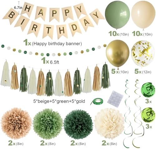 - Green Birthday Party Decorations for Women and Girls: Make your birthday celebrations extra special with this vibrant green party decoration set. It includes a happy birthday banner, tissue paper pompoms, paper tassels, circle garland, hanging swirls, and birthday balloons.